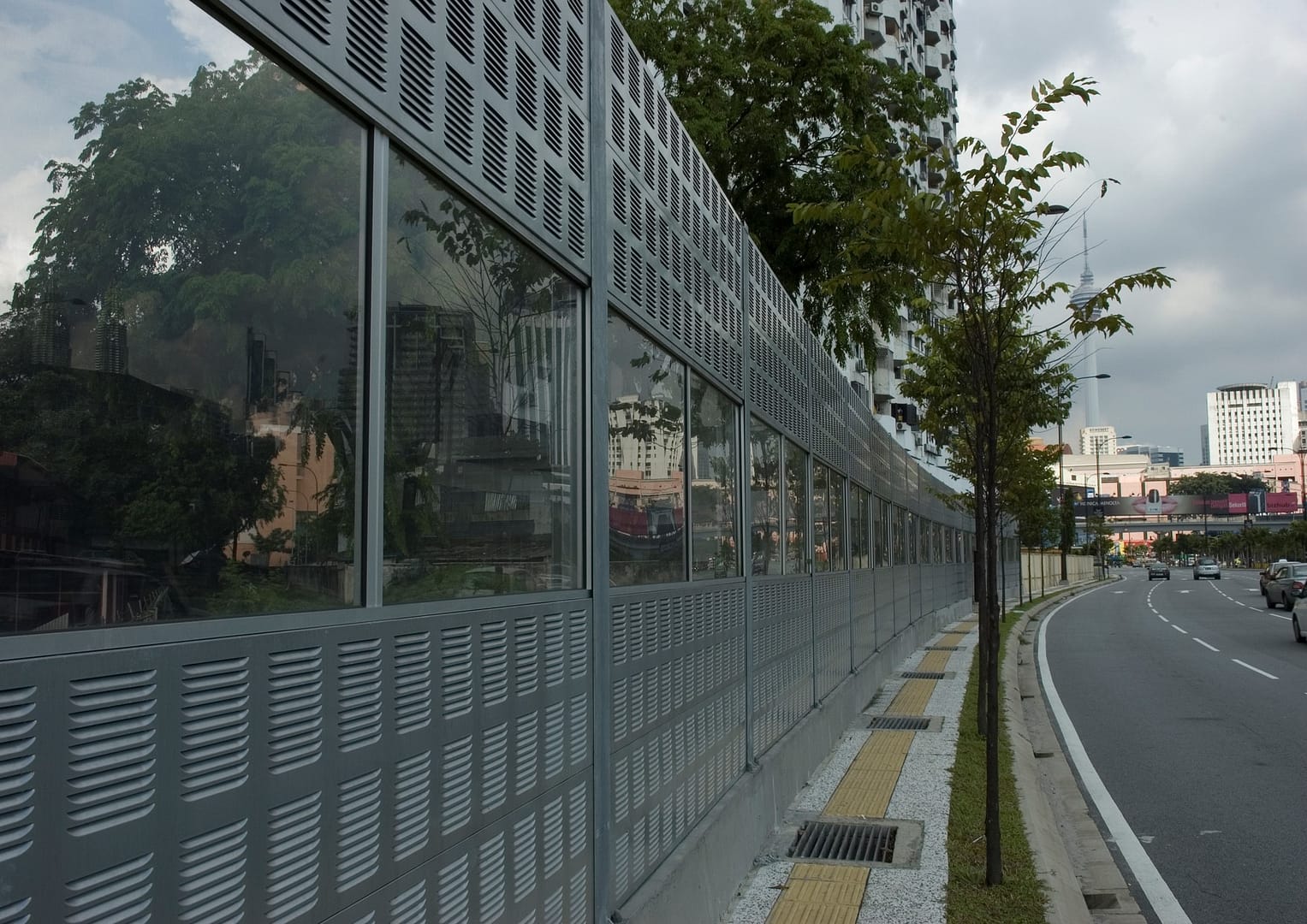 Designed as a highly absorptive noise barrier panels which is lightweight yet able to provide superior sound insulation, PerMAP panels have been used extensively as transportation noise barriers on elevated expressways, LRT/MRT rail links where loading on parapet walls is a major concern.  It is also ideal for use as noise barriers for compressors, cooling towers and other industrial noise control purpose.
